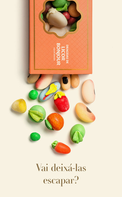 Assim, as Drageias de Licor Bonjour são o resultado de técnica, tempo e arte manual, disponíveis para saborear em casa, oferecer em ocasiões especiais ou descobrir ao vivo na Rua do Almada, onde tradição e experiência se encontram diariamente.
